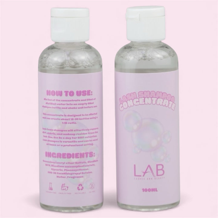 This concentrate is designed to be diluted and can create about 18-20 bottles using a 1:10 ratio. Lash foam shampoo will effectively remove dirt, debris, and makeup residue from the lash extension line.